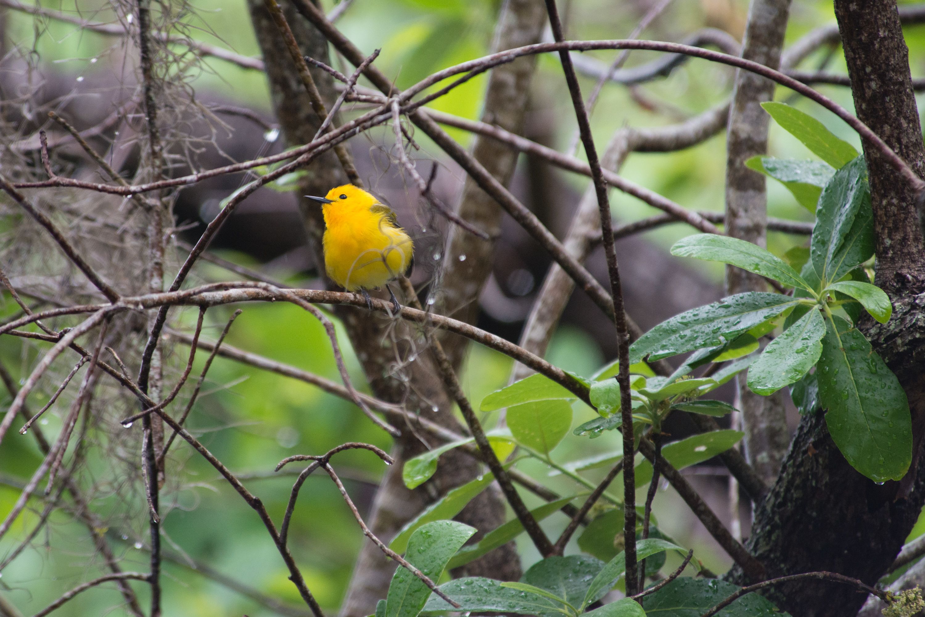 Prothonotary Warblers nest in north central Florida and the panhandle. They are cavity nesters, and they rely on other bird species to excavate nest sites for them which makes it unique among eastern warblers. The name 'Prothonotary' originally referred to a group of official scribes in the Catholic Church who wore bright yellow hoods, as this bird appears to do.
