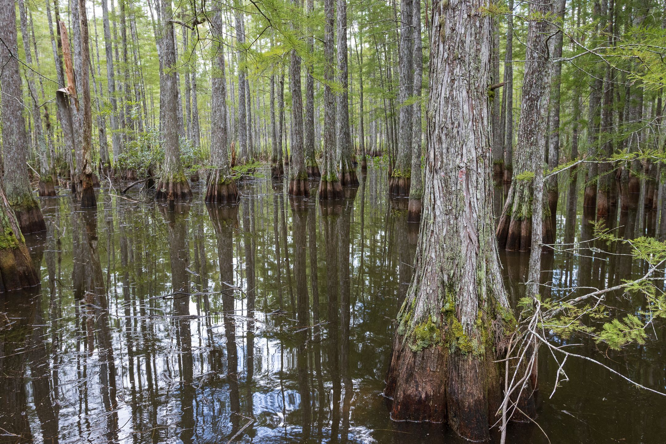 Bald Cypress trees tend to grow in forested wetlands, along streams and rivers, in spring runs and ponds, and in places with still or slow-moving water. Bald Cypresses are the most flood-tolerant of all Florida's trees, which is why they dominate swamps that have long flood periods. Bald Cypress swamps are home to many species, with large mammals and birds especially take advantage of the plant density and hollow trees of the swamps.